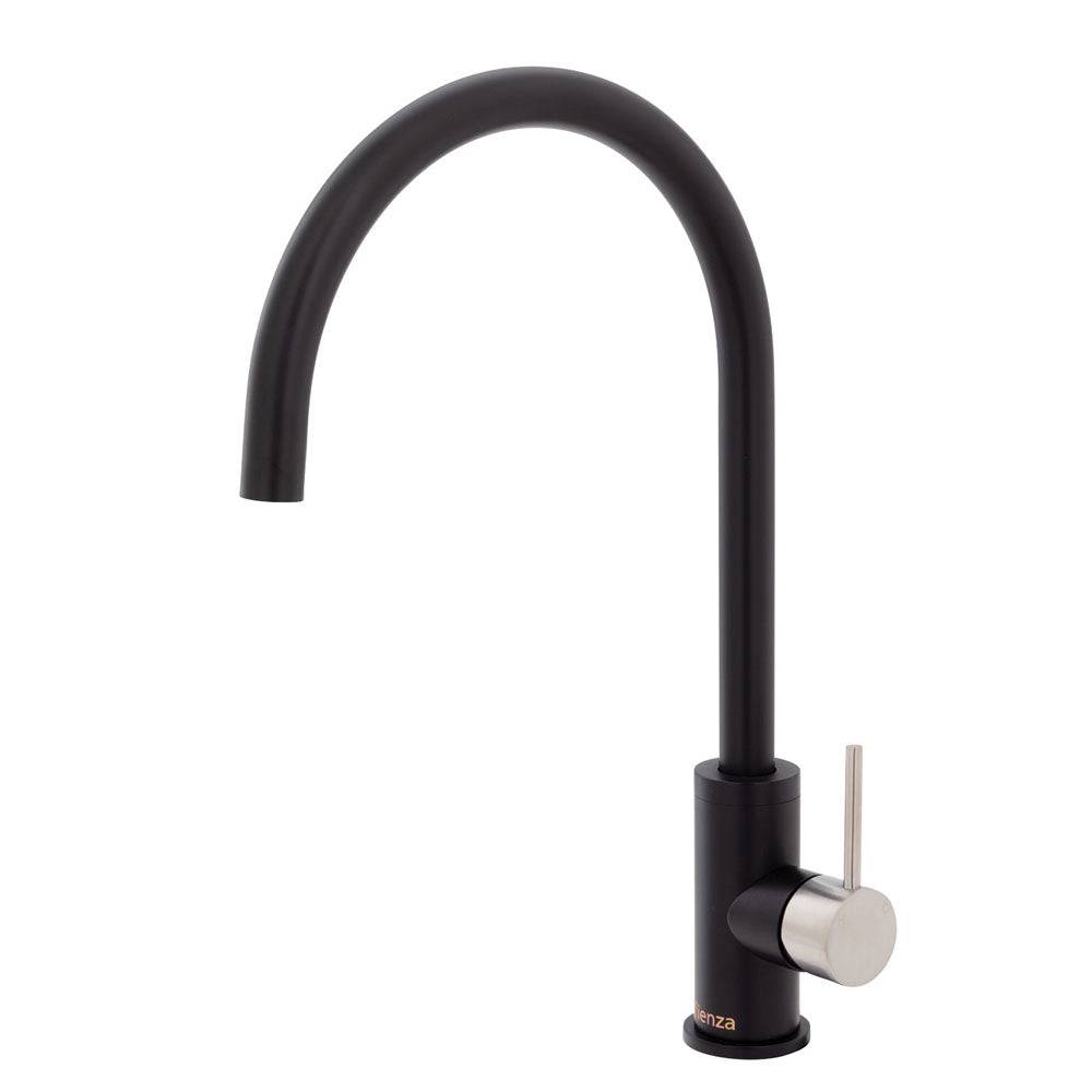 - Electroplated matte black finish with PVD brushed nickel handle
