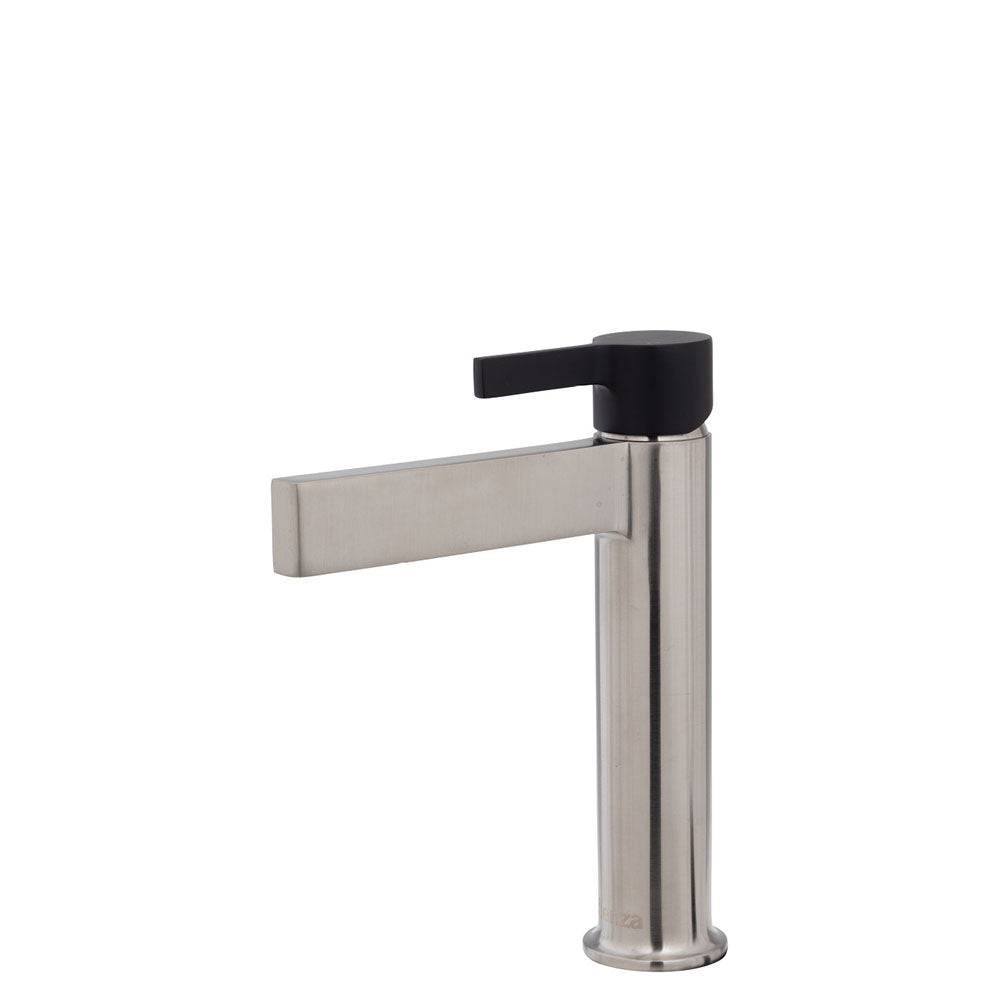 - PVD brushed nickel finish with electroplated matte black handle