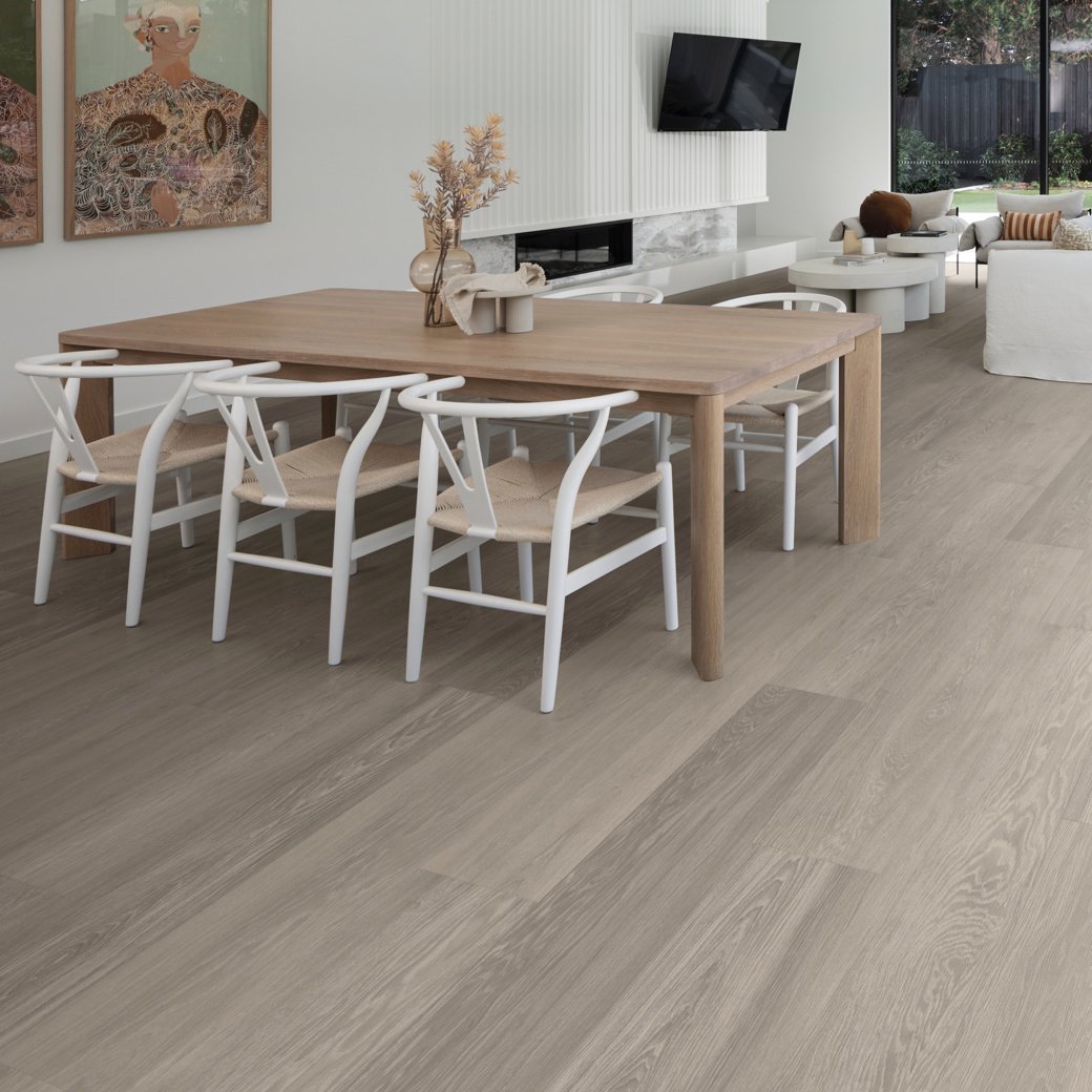 Oak is a timeless and popular flooring choice and our Sterling Oak planks offer a versatile choice for a wide range of interior styles. Sterling Oak captures a perfect balance of straight grain textures, lightly limed to a mid-grey colouring.